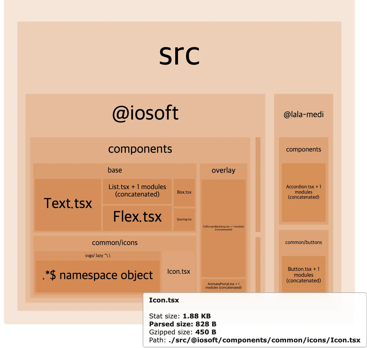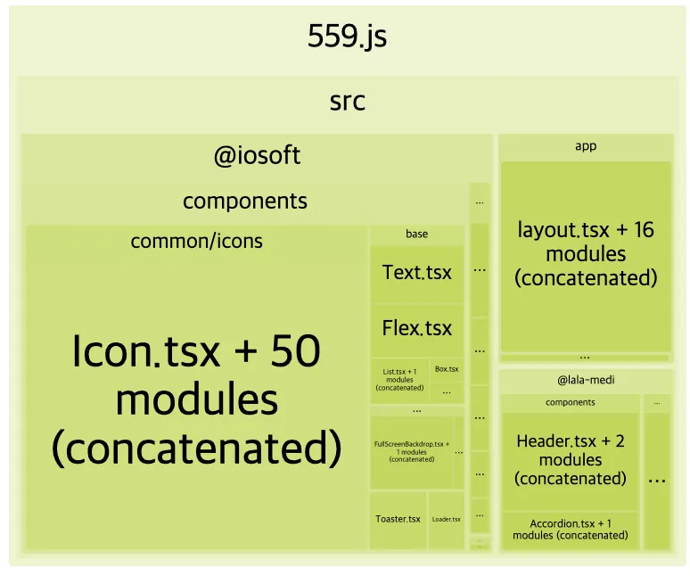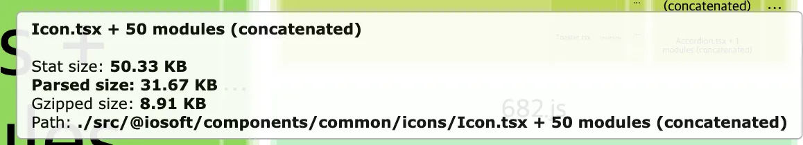 아이콘 컴포넌트 50개가 모두 트리 쉐이킹이 되지 않은 상태로 포함되어 있었으며 Parsed size가 약 30KB로 측정되었습니다.