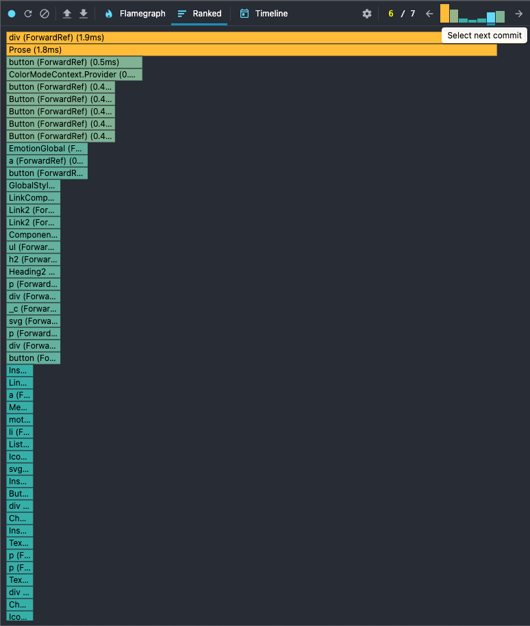 Prose가 마크다운 전체의 컴포넌트인 것을 감안하면 Flex와 같은 유틸성 컴포넌트가 0.5ms 안팎으로 측정되는데, 성능에 전혀 지장이 없는 수준입니다.
